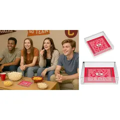 Celebrate college life with our exclusive line of acrylic trays, designed with vibrant backgrounds filled with words that capture the spirit of student life. Perfect for dorm rooms, study desks, or as a thoughtful gift, each tray combines durability with eye-catching style. Made from high-quality acrylic, these trays are lightweight yet sturdy, ideal for organizing essentials or serving snacks. Showcase your school pride in a fun, functional way while keeping your space organized. From study sessions to social gatherings, these trays are a must-have for any student or alum who wants to carry a piece of campus culture with them.